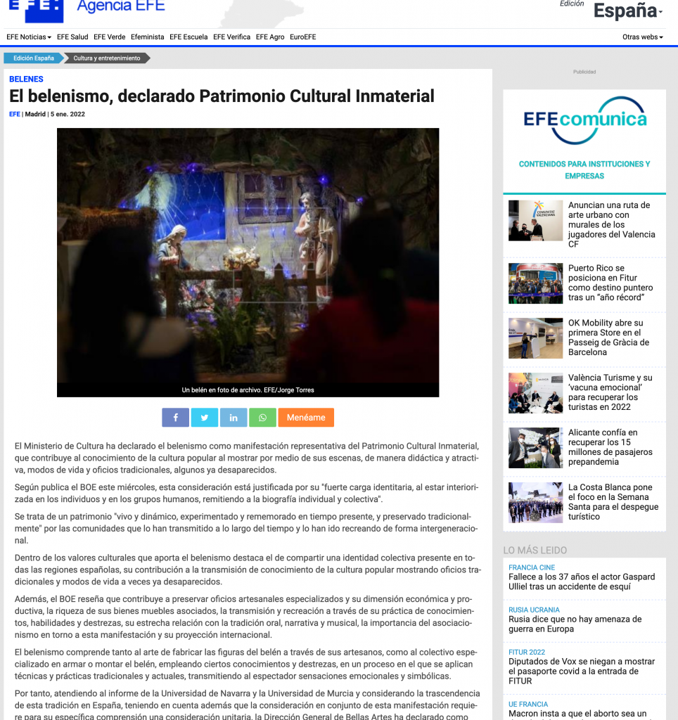 Fuente: https://www.efe.com/efe/espana/cultura/el-belenismo-declarado-patrimonio-cultural-inmaterial/10005-4711397