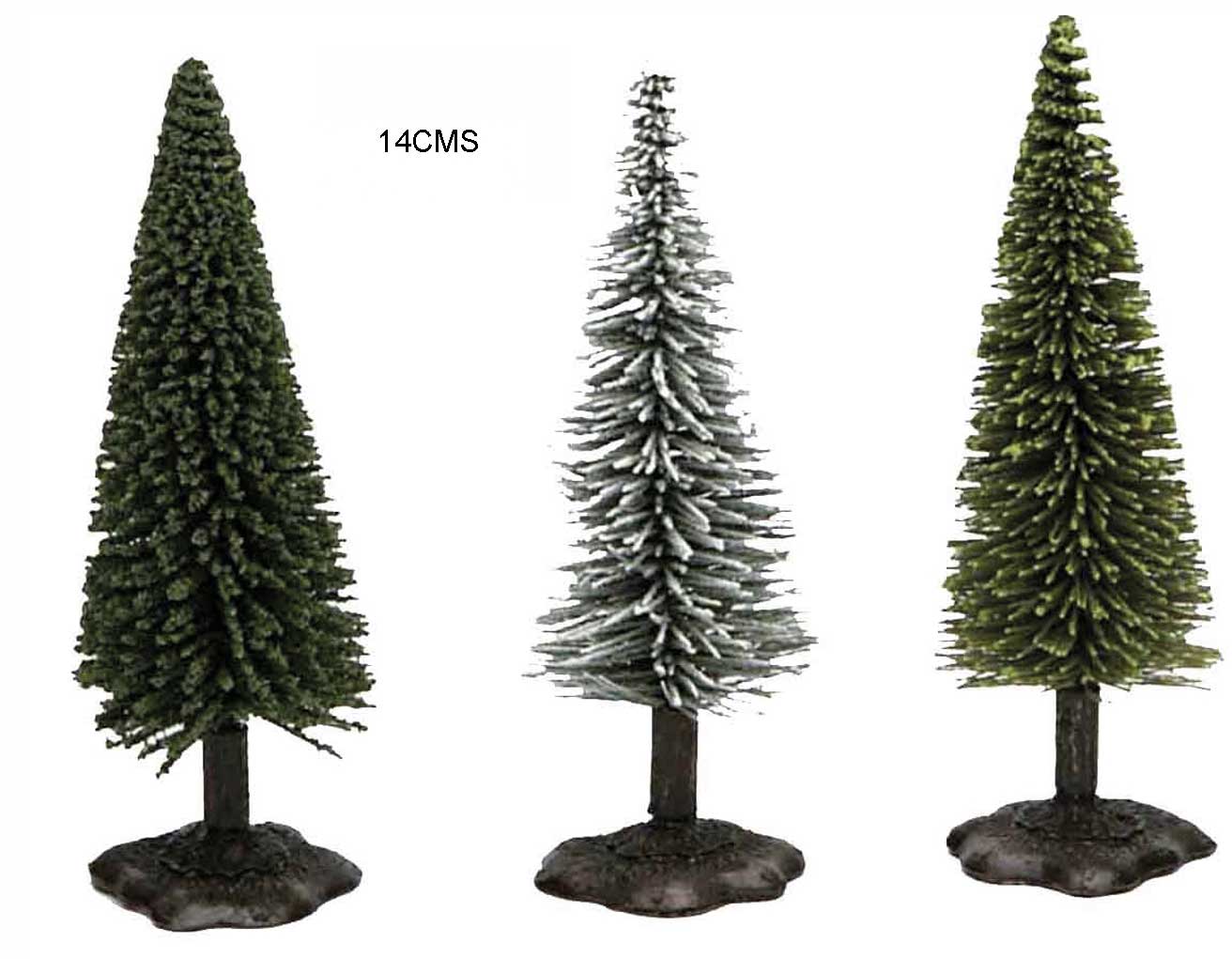Abetos surtidos 14 cms en plástico para complementos de paisaje y miniaturas. Precio 3 piezas.