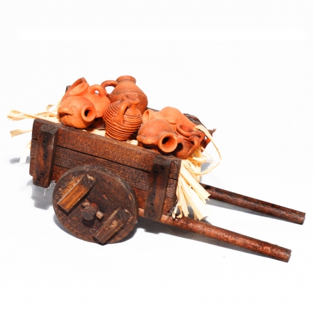 Elaborado en madera y vasijas de barro cocido. Dimensiones para animales de 8 cm de escala. Medidas de la estructura 7 x 5,2 y 8 cm. de alto.