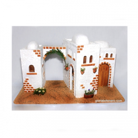 Elaborada en madera, revestida de pasta de escayola.Los complementos no están incluidos dentro del precio.