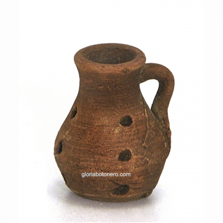 Elaborada en el torno. Es de barro cocido y envejecido. Medida de alto 2,5cm.