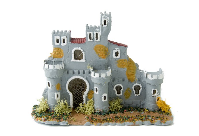 Castillo silueta de plástico para complementos de paisaje en belenes y miniaturas. 15cms x 5cms x 11cms. Precio por unidad.