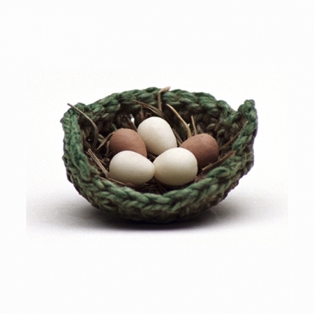 Diametro 3,2 cm. Cesta con huevos modelados con porcelana rusa.
