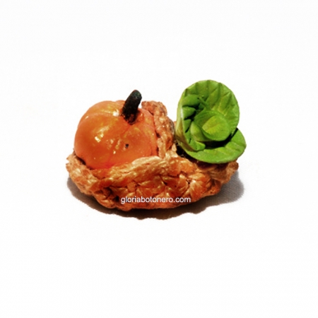 Cestita con calabaza y lechuga. Dimensiones 1,5 x 2,5 cm.