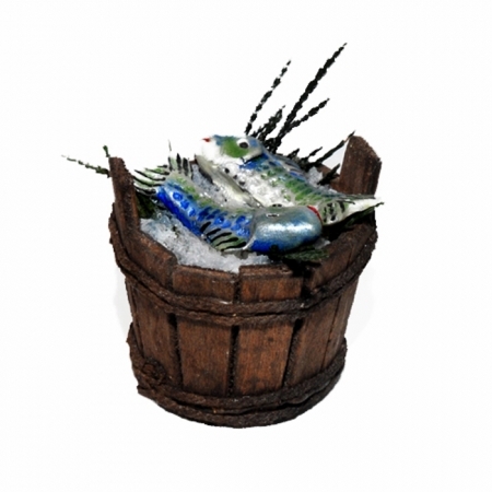 Cubeta de madera con 2 lubinas. Medidas 3,3 cm de alto y 3,7 de diametro.