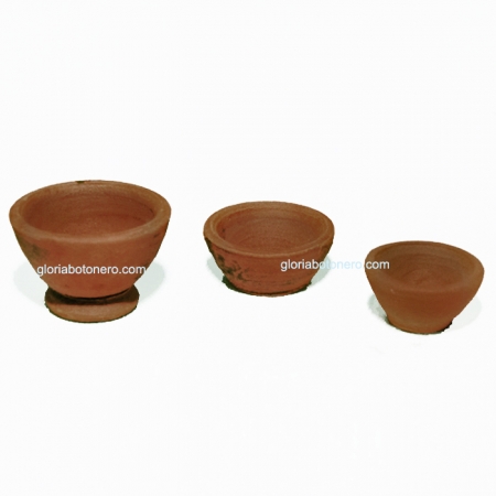 Elaborado en el torno. Es de barro cocido y envejecido. Diametro 2,2cm. Precio unidad del tamaño grande.