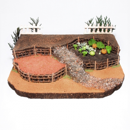 Estructura de 3 niveles para recrear un ambiente exteriror, con figuras de 5 a 6 cm.Medidas 12x26cm. y 6 de alto.