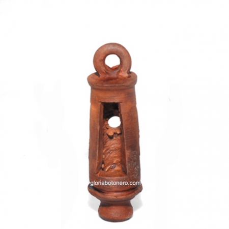 Elaborado en el torno es de barro cocido. Diametro 1,8cm. y 6,9 de alto. Precio del farol sin luz. Si lo desea con luz, le ofrecemos neones en esta misma sección.