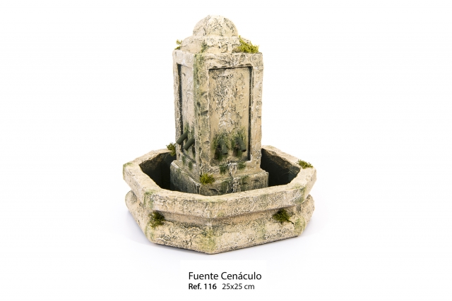 Fuente  en resina policromada con acrílicos. Medidas ( largo x ancho x alto) : 25x25x25 cm. Diseño de Belenes Estepa.