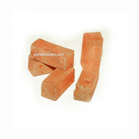 Elaborado en barro cocido. Medida de cada pieza: 0,8 x 0,7 x 0,5 cm. Precio de la caja con 500 unidades.