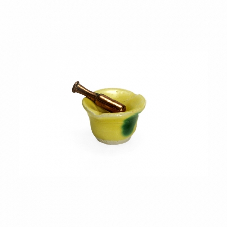 Conjunto de dos piezas, la maza esta elaborada con esta�o ba�ado en cobre y el mortero es de ceramica vidriada. Precio del conjunto. Diametro 2,2cm.