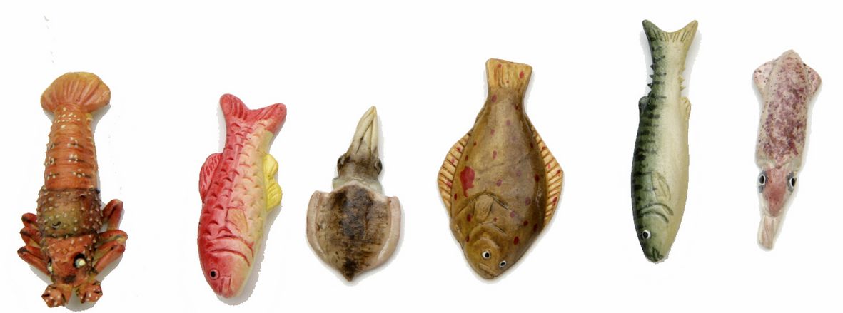 Peces en resina surtidos 1,5cms. Precio unidad.