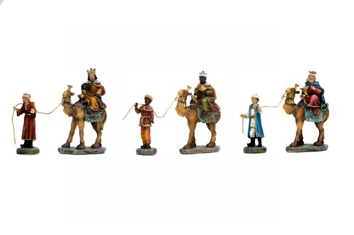 Juego de 6 piezas. Incluye reyes a camello y tres pajes. Piezas de resina 6cms.