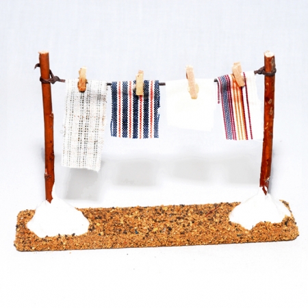 Conjunto de tendedero con ropa y pinzas. Medidas de la base 12×2,6cm y 8cm. de alto.