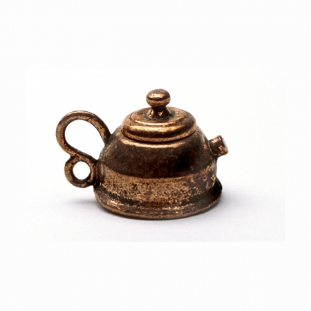 Elaborado con esta�o y ba�o de cobre. La tapadera se puede quitar. Medidas de alto 1,6cm. Diametro 1,8cm.