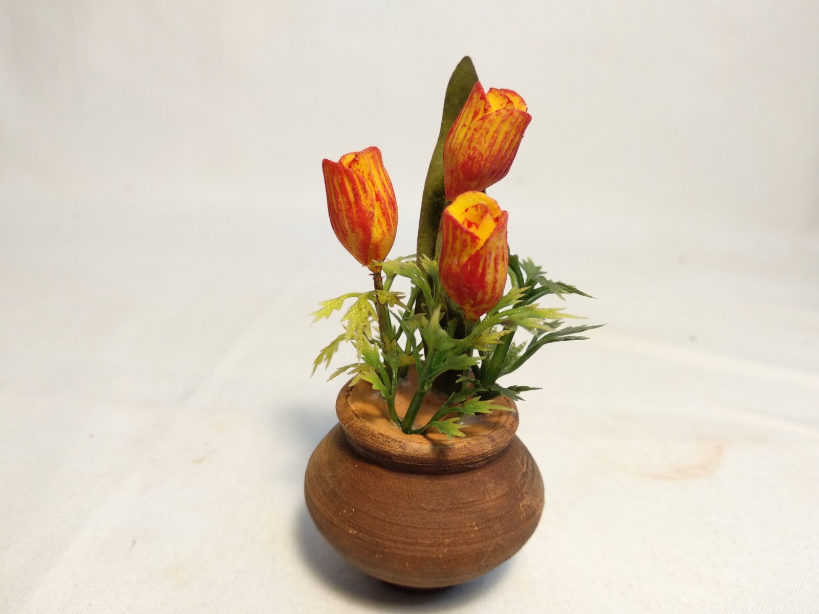 Tinaja de barro cocido. Altura total con la planta 7 cm