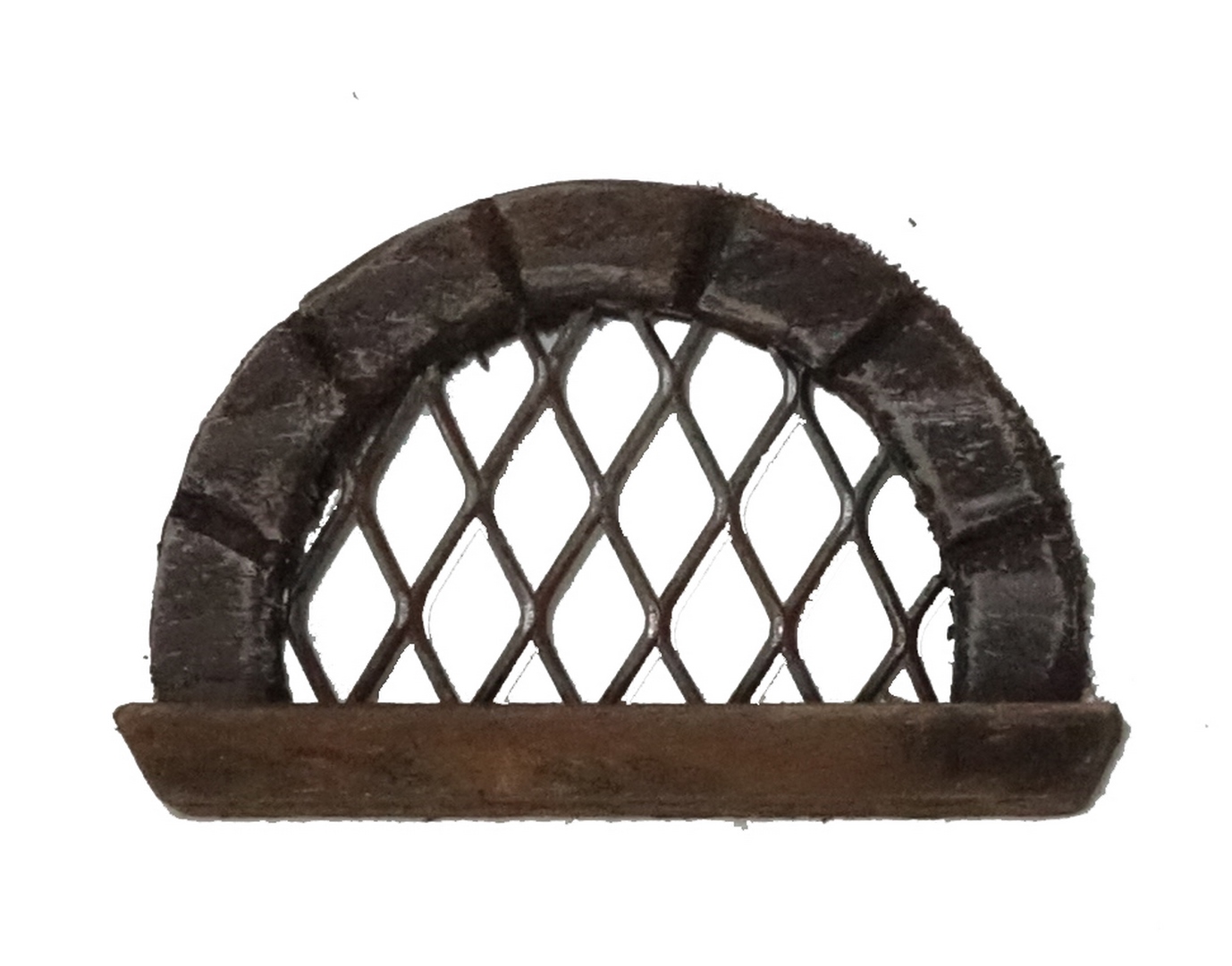 Ventana de madera pequeña redonda para complementos de construcción miniatura. 6,5cms x 4cms Precio por unidad.