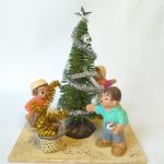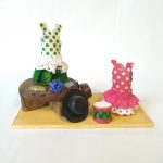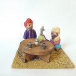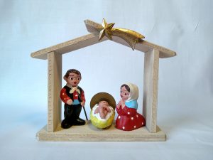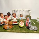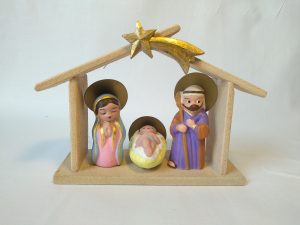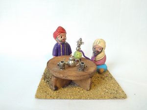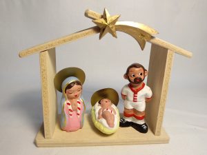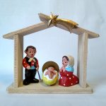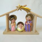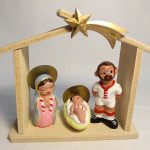 Material: figuras de barro y peana de madera. Figuras de 5 cm