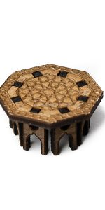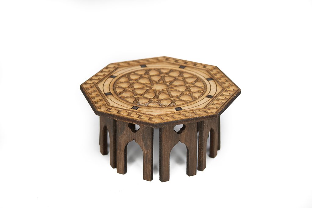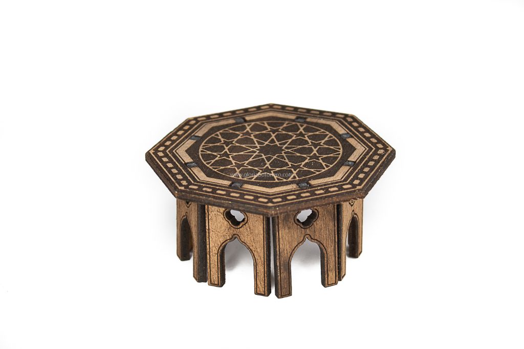 Mesa artesanal de madera policromada. Medidas: 7,5 ancho x 3,8 cm alto. Los colores pueden variar en función de la disponibilidad.