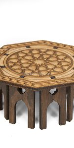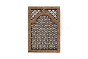 Reproducción del Patio de las Doncellas del Real Alcázar de Sevilla. Medidas: Largo 16 cm x Ancho 4,1 cm x Alto 9,5 cm. Material: Madera.