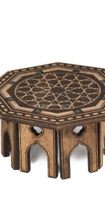Medidas: Largo 6,1 cm x Ancho 4,8 cm x Alto 6,3 cm. Material: Madera. Incluye complementos en metal. Idóneo para figuras de 5 cm como los cabezones de Alborox.
