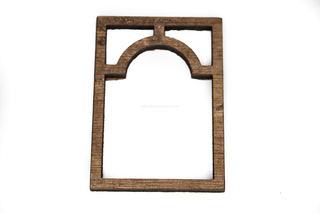 Puerta artesanal de madera policromada. Medidas: 14,5 x 7,5 cm.