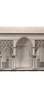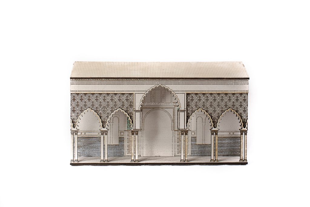 Reproducción del Patio de las Doncellas del Real Alcázar de Sevilla. Medidas: Largo 27,3 cm x Ancho 6,7 cm x Alto 16 cm. Material: Madera.