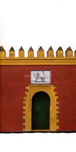Reproducción de la Puerta del León del Real Alcázar de Sevilla. Medidas: Largo 36,7 cm x Ancho 7,5 cm x Alto 29,5 cm. Material: Madera.